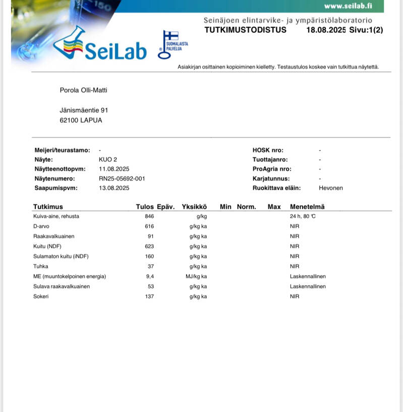 2025 Heinä/odelma analysoitu~450kg