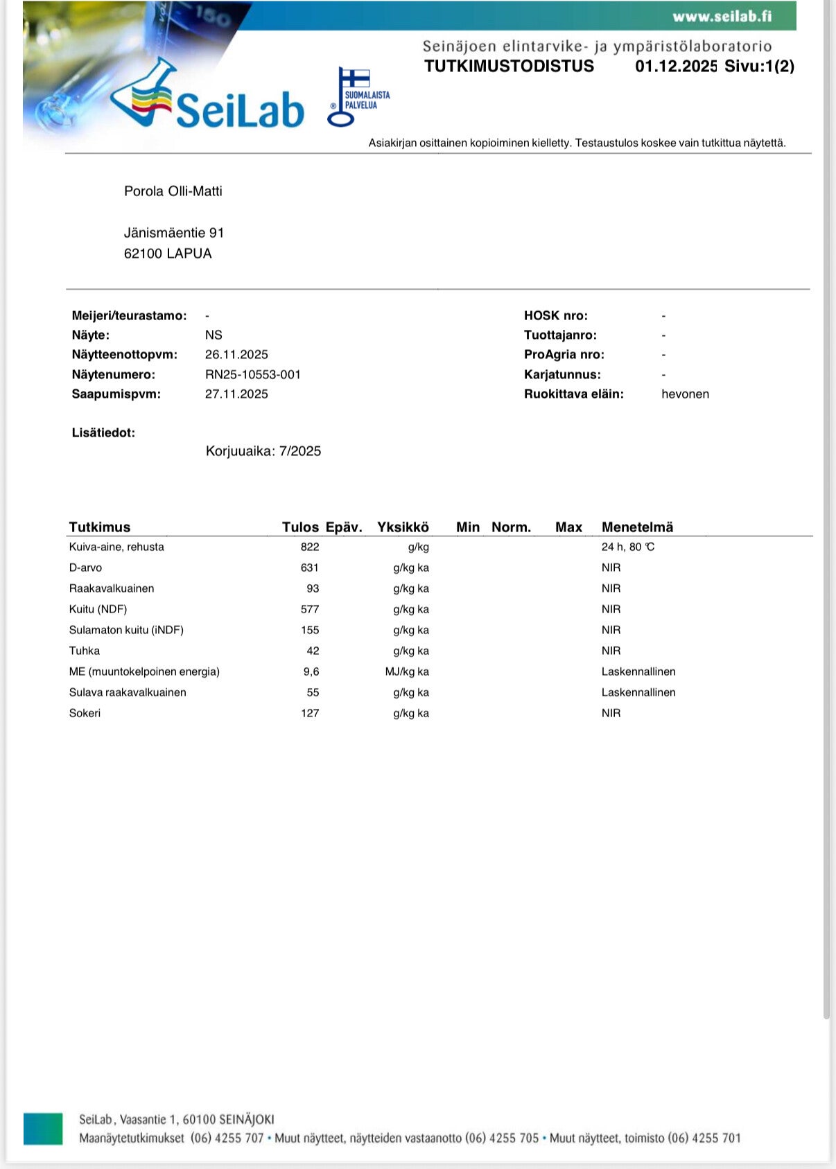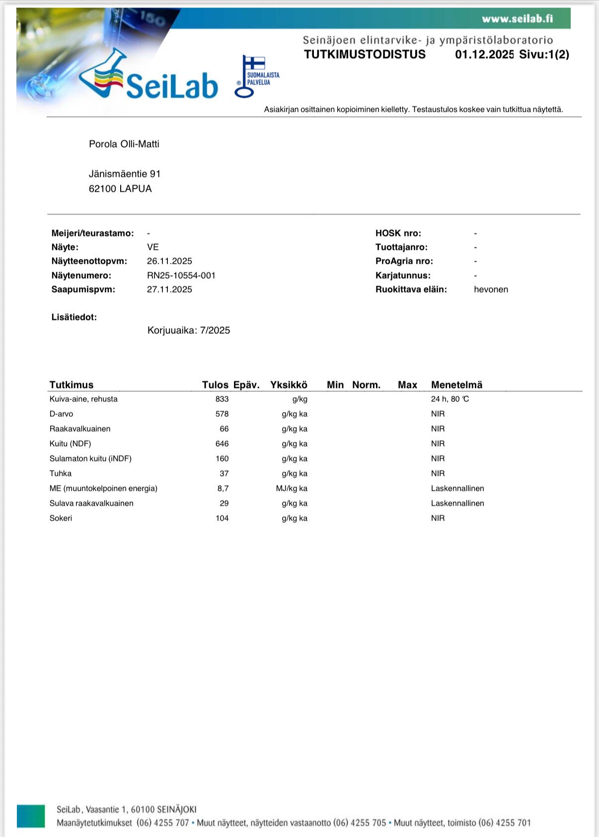 2025 Heinä analysoitu~450kg